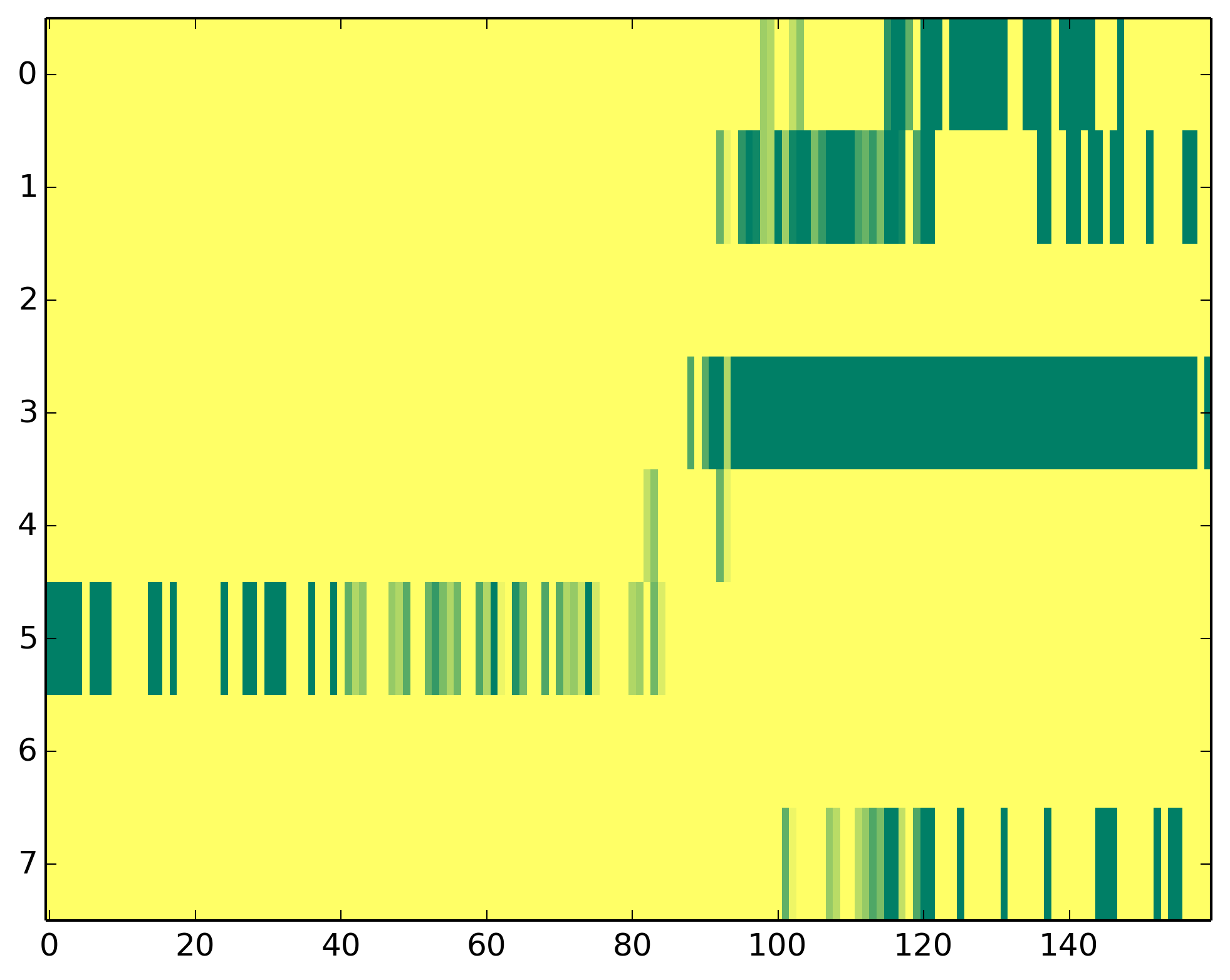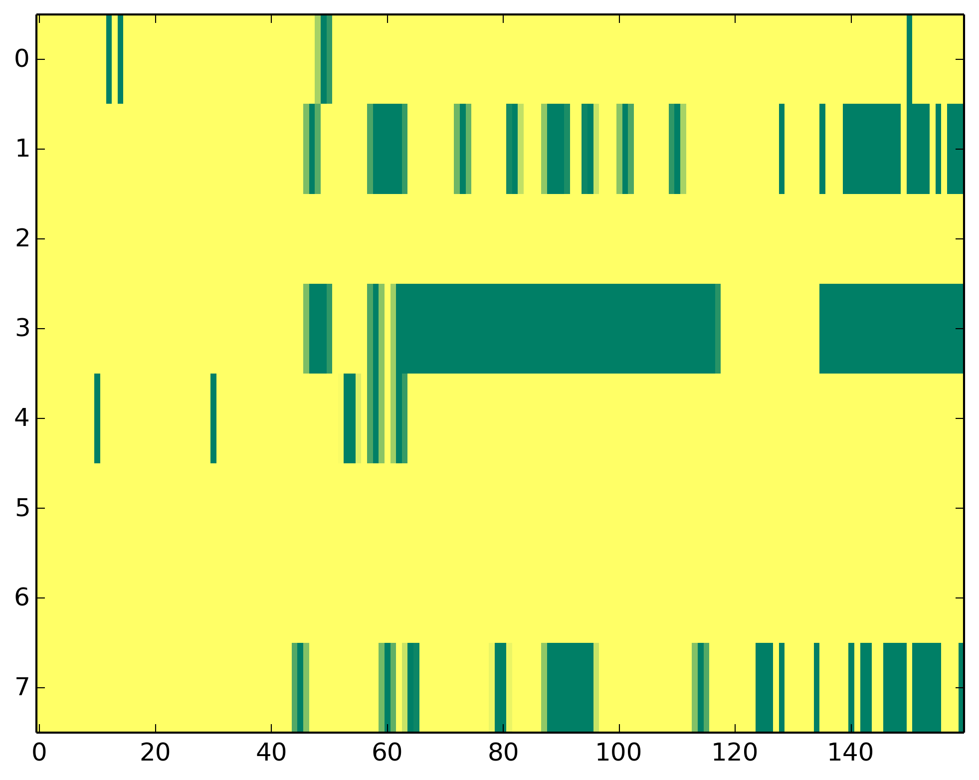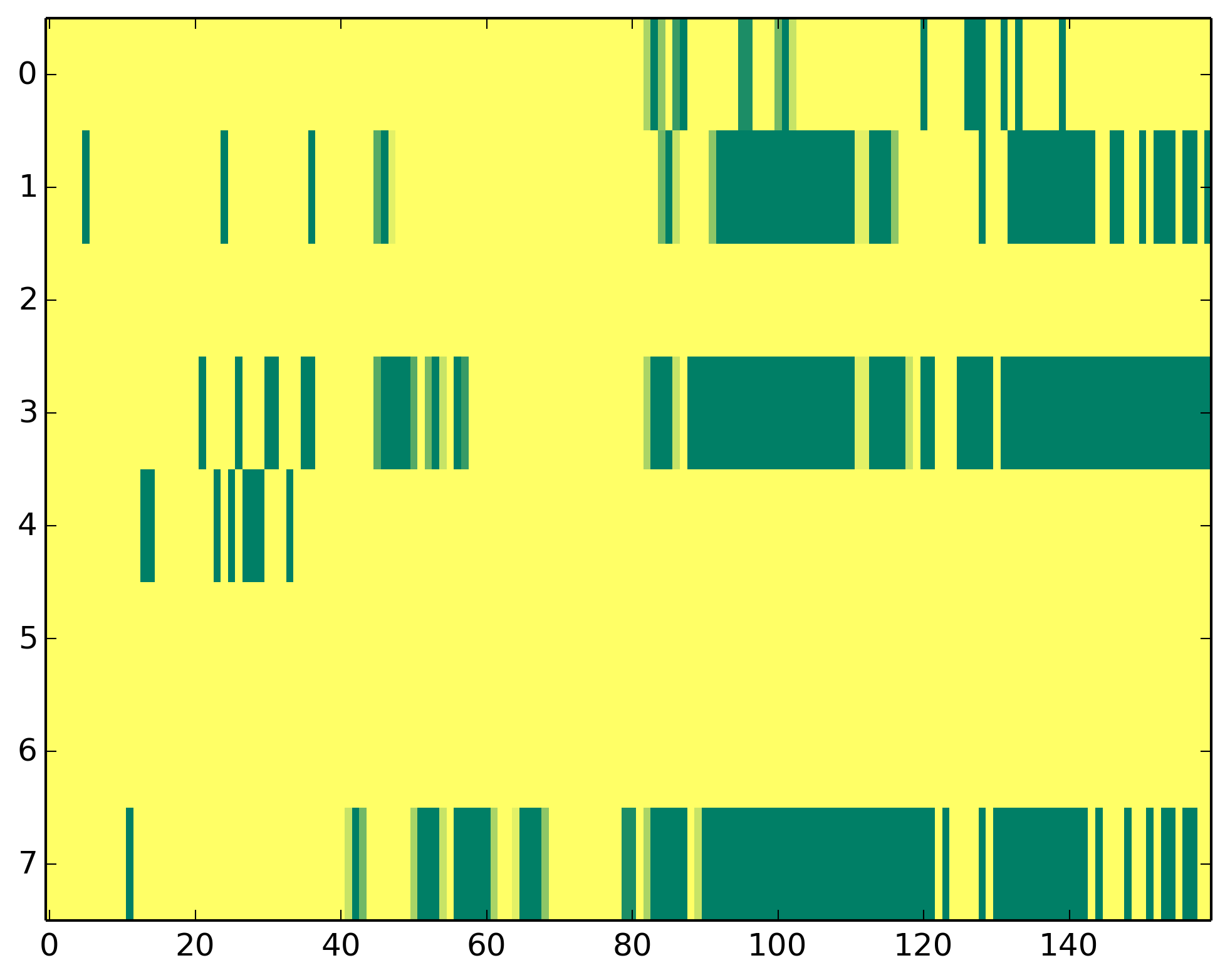 0 - Polymerase II activity 1 - H3ac => TSS 2 - H3K9me3 => Represive 3 - H3K4me3 => (High) Promoters, (Low) Enhancers 4 - H3K4me1 => (Low) Promoters, (High) Enhancers 5 - H3K36me3 => Transcribed regions 6 - H3K27me3 => Repressive 7 - H3K27ac => Enhancers