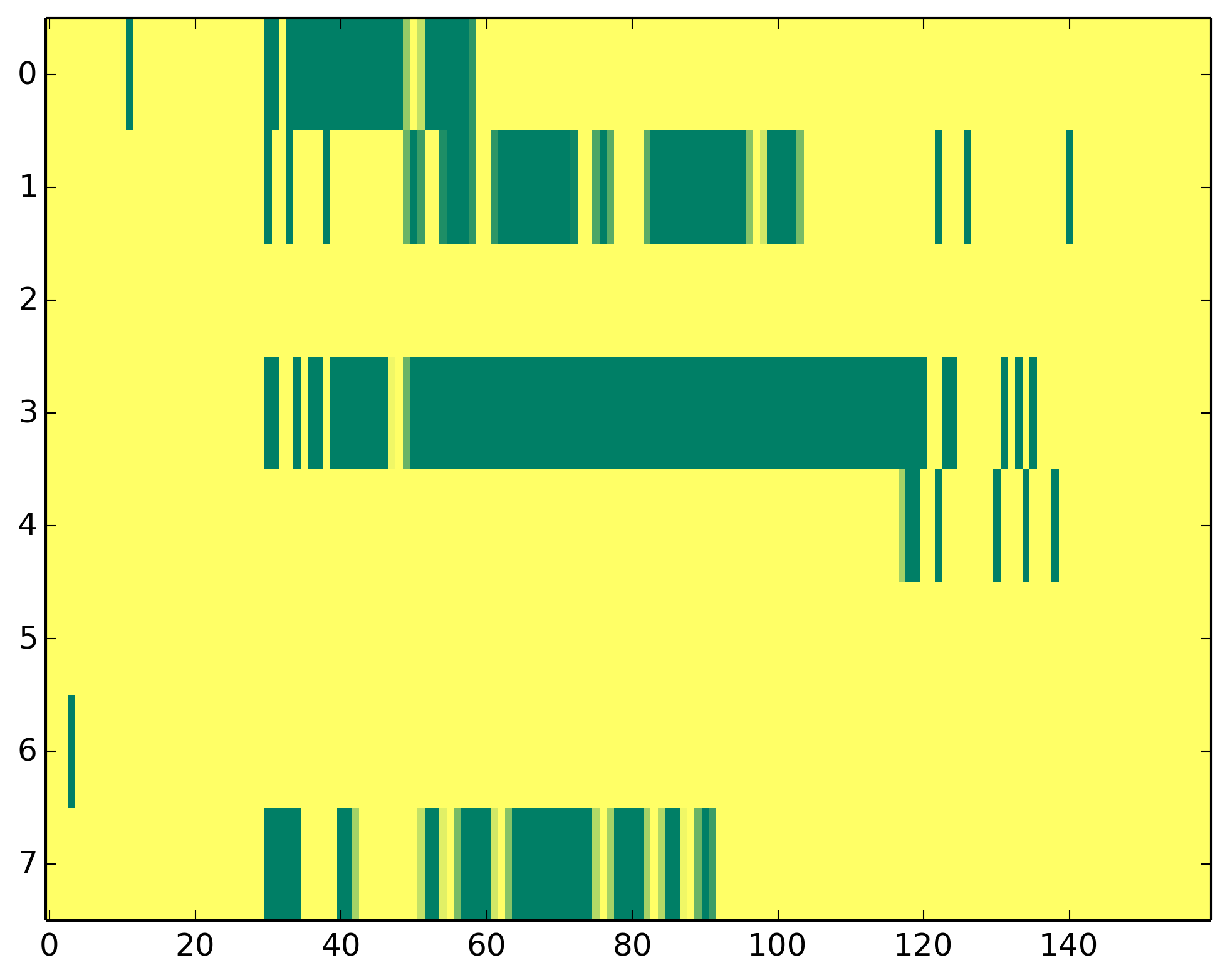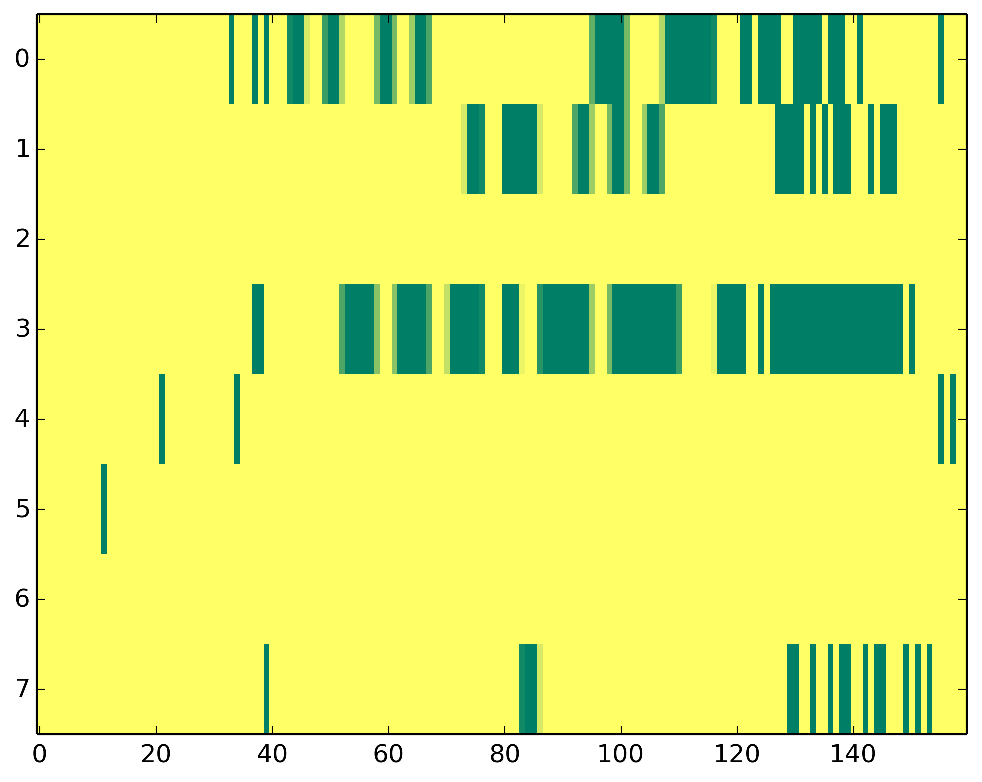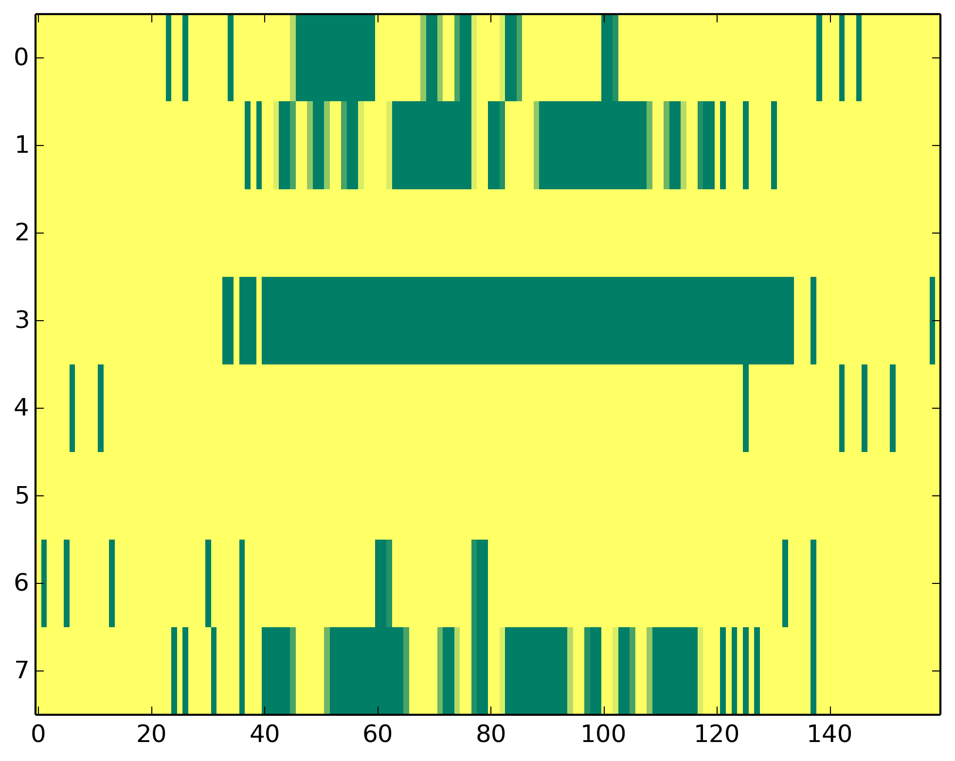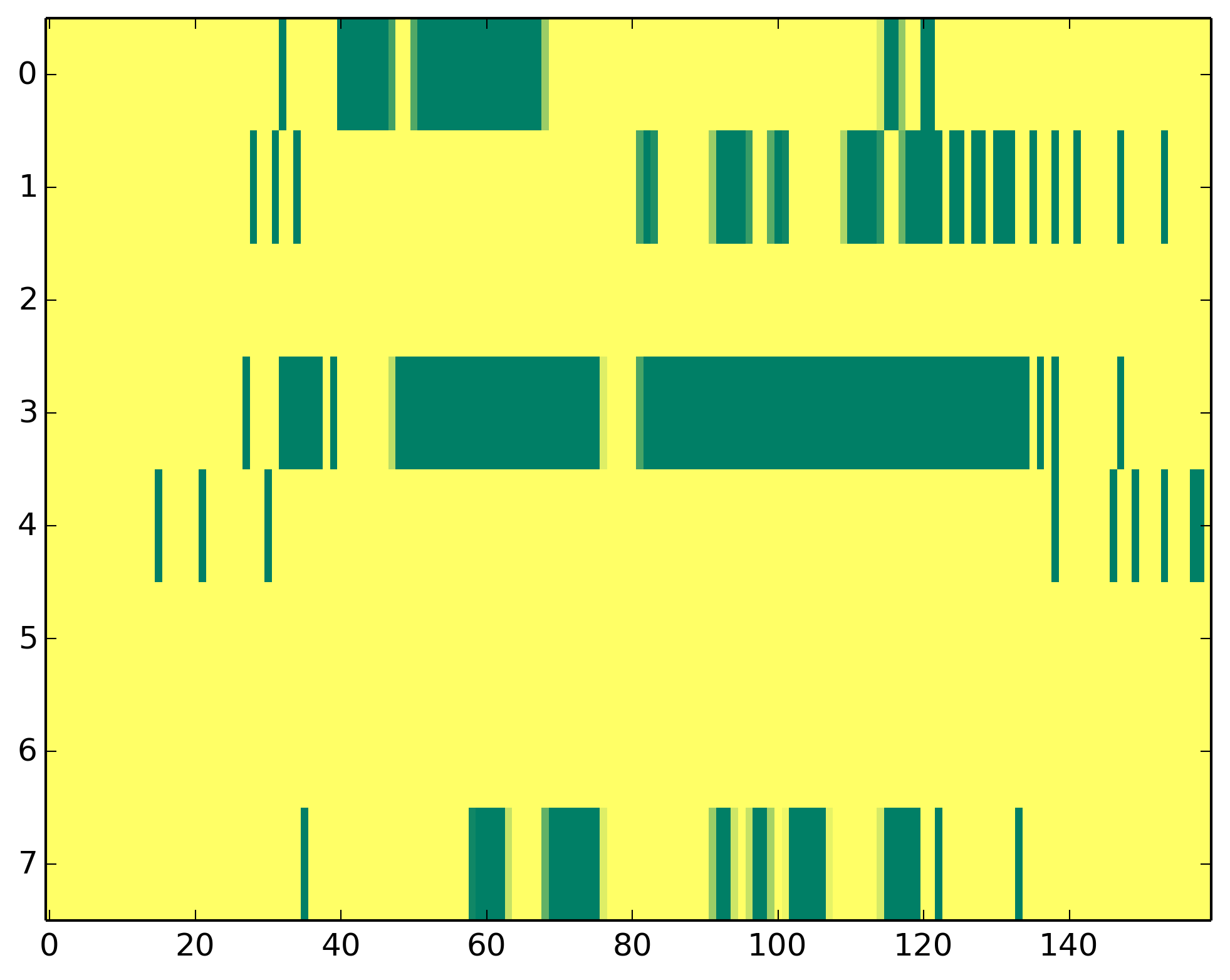 0 - Polymerase II activity 1 - H3ac => TSS 2 - H3K9me3 => Represive 3 - H3K4me3 => (High) Promoters, (Low) Enhancers 4 - H3K4me1 => (Low) Promoters, (High) Enhancers 5 - H3K36me3 => Transcribed regions 6 - H3K27me3 => Repressive 7 - H3K27ac => Enhancers