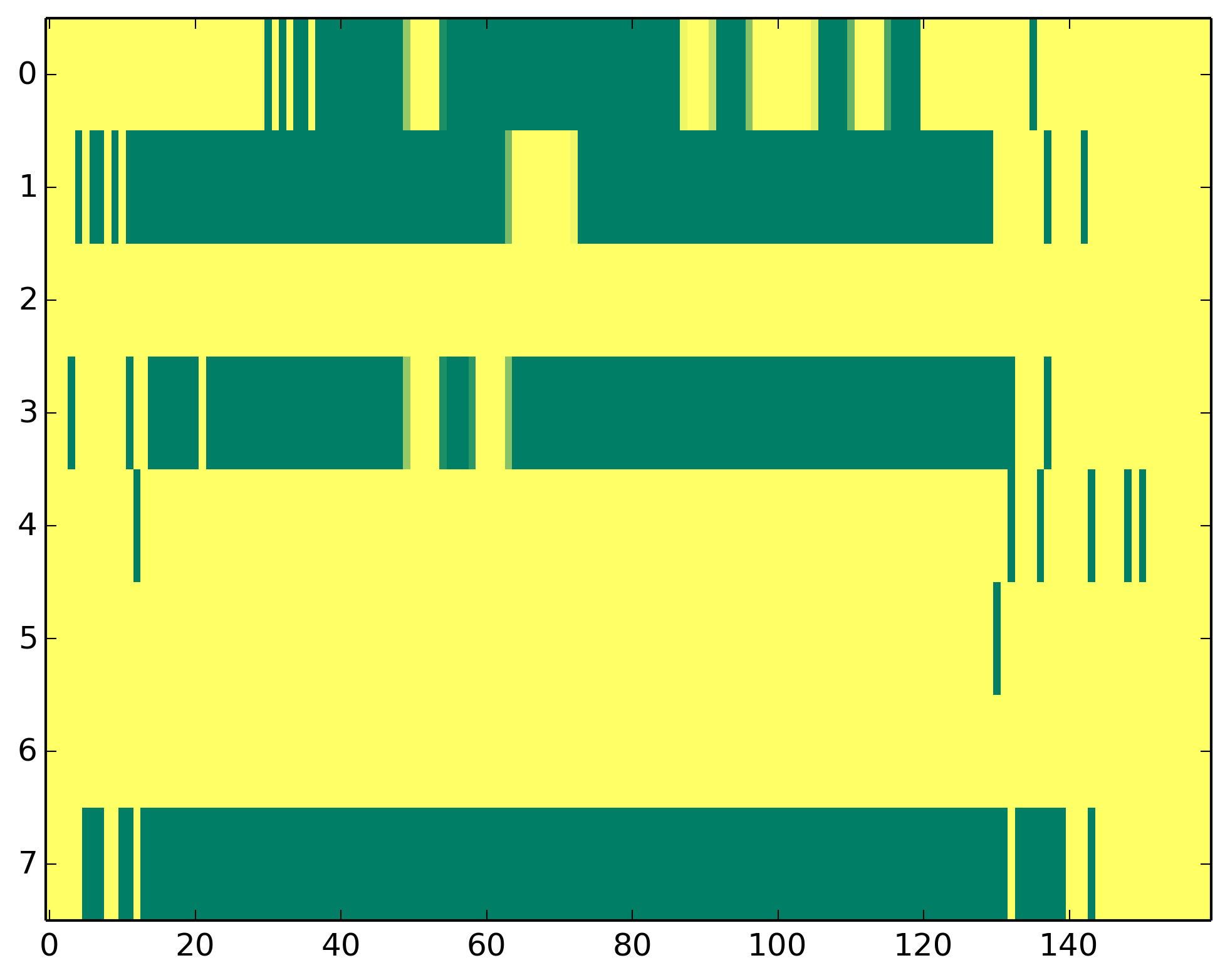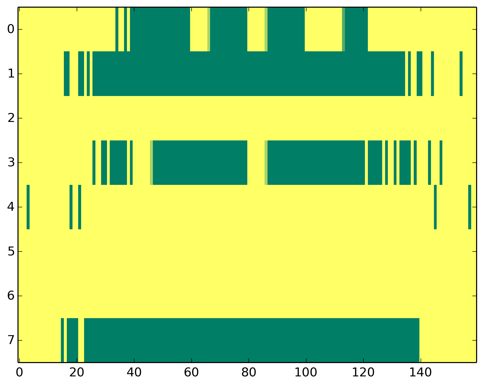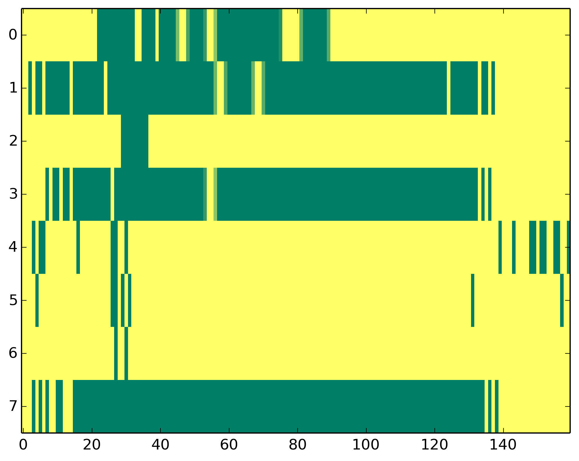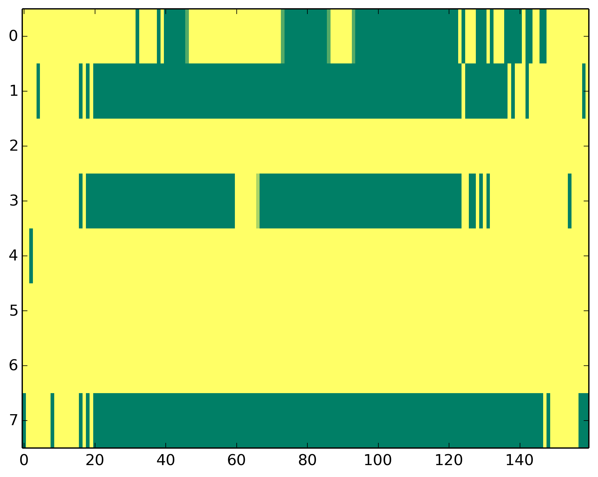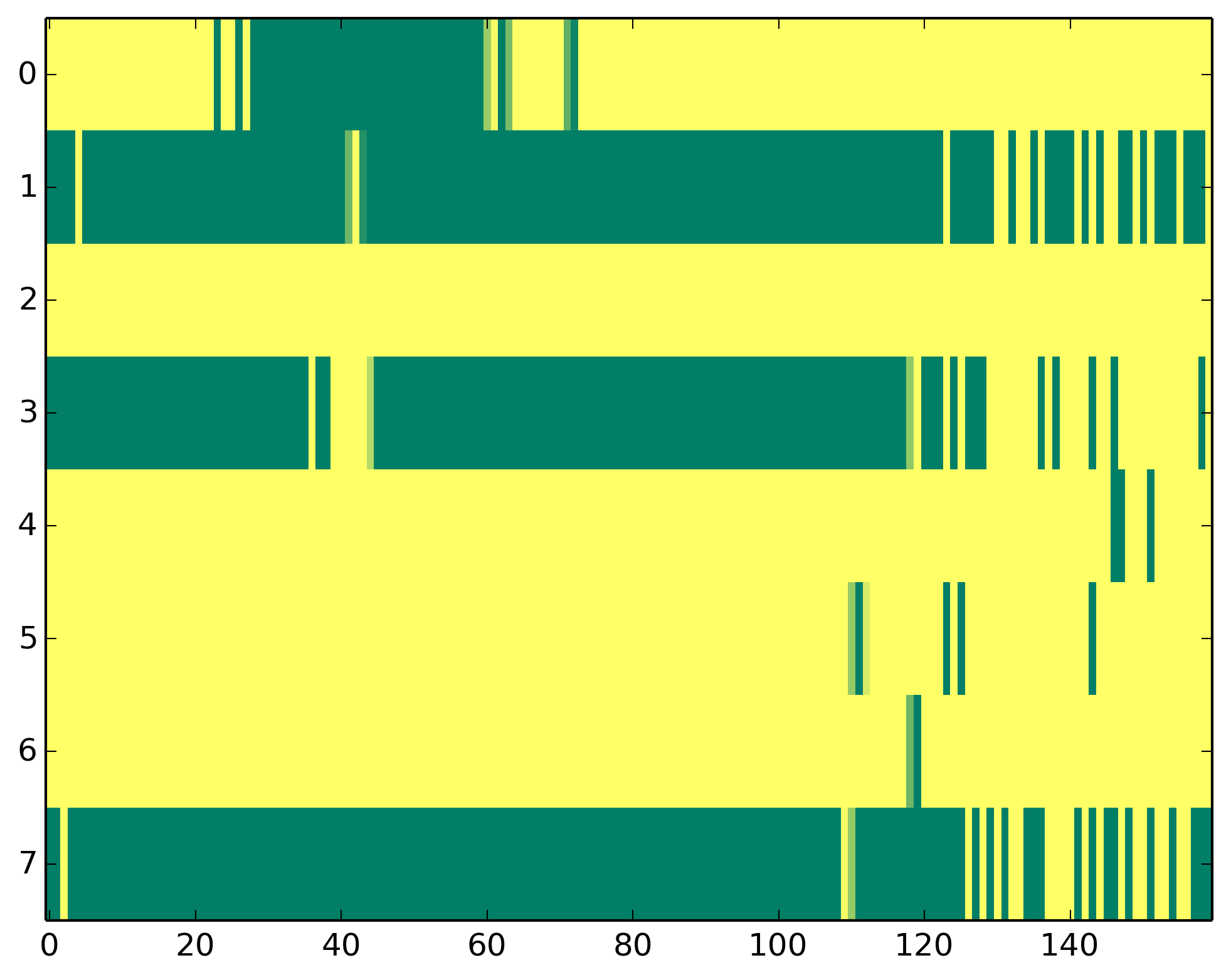 0 - Polymerase II activity 1 - H3ac => TSS 2 - H3K9me3 => Represive 3 - H3K4me3 => (High) Promoters, (Low) Enhancers 4 - H3K4me1 => (Low) Promoters, (High) Enhancers 5 - H3K36me3 => Transcribed regions 6 - H3K27me3 => Repressive 7 - H3K27ac => Enhancers