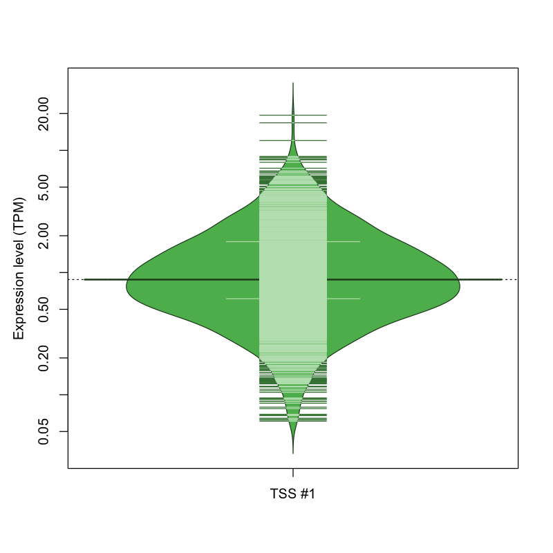 TSS expression levels were studied across 1829 TSS-CAGE libraries, based on FANTOM5 data.