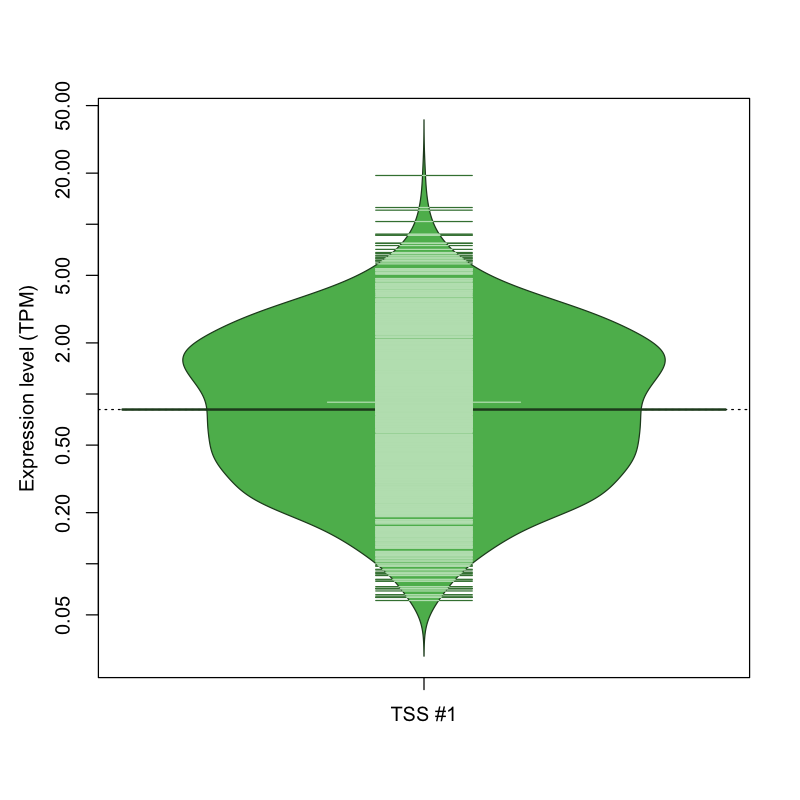 TSS expression levels were studied across 1829 TSS-CAGE libraries, based on FANTOM5 data.