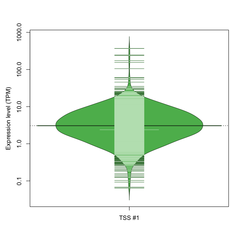 TSS expression levels were studied across 1829 TSS-CAGE libraries, based on FANTOM5 data.