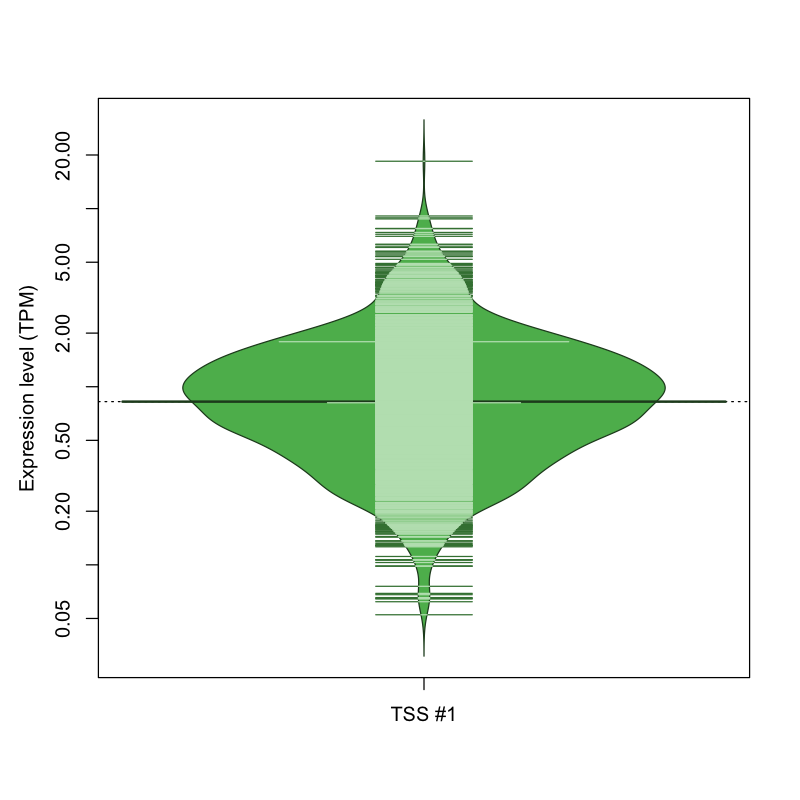TSS expression levels were studied across 1829 TSS-CAGE libraries, based on FANTOM5 data.