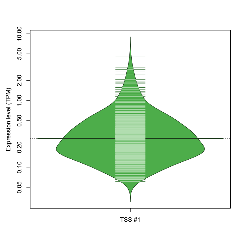 TSS expression levels were studied across 1829 TSS-CAGE libraries, based on FANTOM5 data.