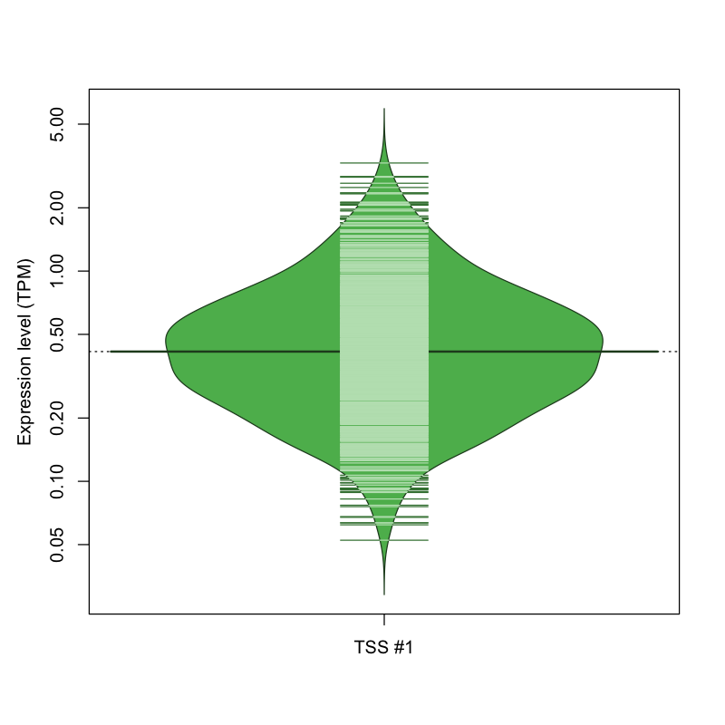 TSS expression levels were studied across 1829 TSS-CAGE libraries, based on FANTOM5 data.